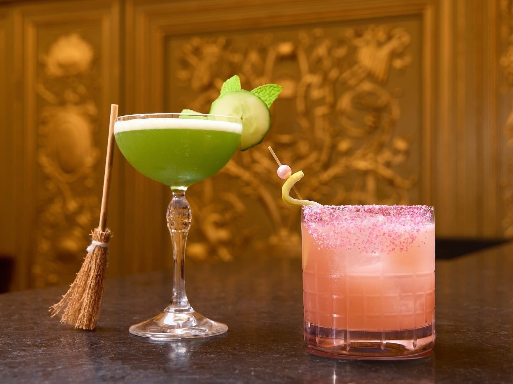 As part of the partnership, currently on display in the Palace’s lobby is a showcase of “Wicked”’s Tony Award-winning costumes designed by Susan Hilferty, available for viewing by the public. The Palace’s cocktail lounge, the Gold Room, offers two “Wicked”-themed cocktails. The “Emerald Elixir” features Hendrick’s Cucumber and Rose Gin, cold-pressed green juice, lemon juice and simple syrup, while the “Ozdust Paloma” is composed of Patrón Silver tequila, pink grapefruit juice and cranberry juice. Both concoctions can be prepared without alcohol.