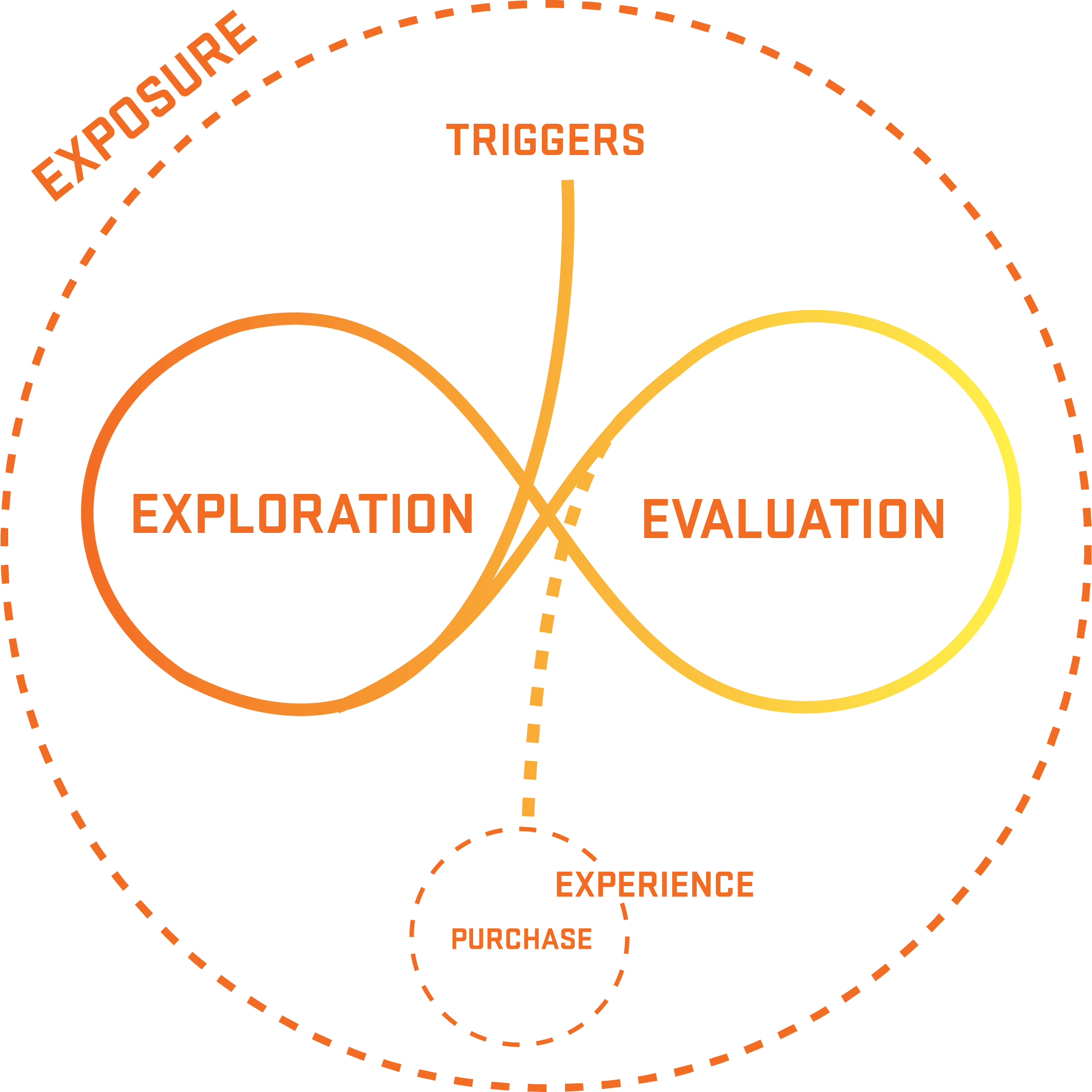 Researchers at Google, who study consumer behavior, created a new advertising model with the aim of more accurately representing the path a consumer takes when choosing to buy a product (or, in our case, a ticket to a show). To make this easily digestible, we’ll build the model together, piece by piece.
